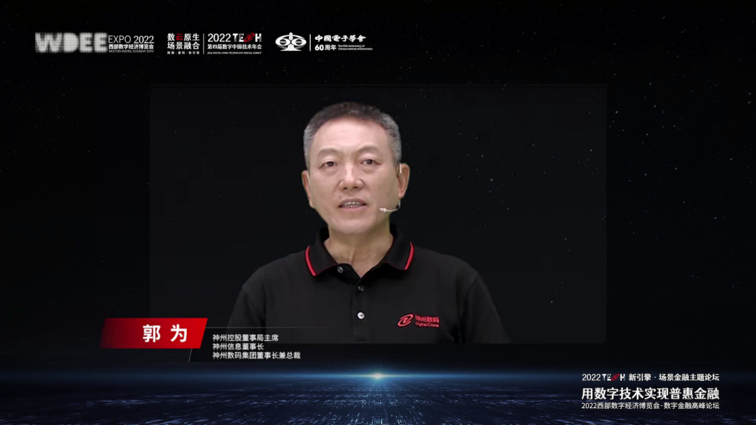 神州信息常务副总裁赵文甫在《数字技术实现普惠金融》主旨演讲中谈到,当前普惠金融发展的瓶颈在于缺少针对性业务模型、专业服务人员、定向金融产品和智能化服务手段。数字技术的应用,能够提升产业全链条的效能,促进金融科技发展,同时有效拓宽金融服务广度,促进金融服务深度,提升金融服务温度,让金融服务能够触及到中国社会90%的人群,也能利用技术手段将更专业、更复杂的金融服务输送到广大客群,为客户提供更多的便利、尊重和关怀。神州信息自2018年以来,聚焦金融科技战略,以数字技术应用助力农村金融普惠、服务小微企业生产,已取得了显著成效。未来,神州信息将继续推进“科技+数据+场景”融通创新的场景金融新模式,服务于乡村振兴、实体经济高质量发展,携手生态,实现普惠金融,走向共同富裕。